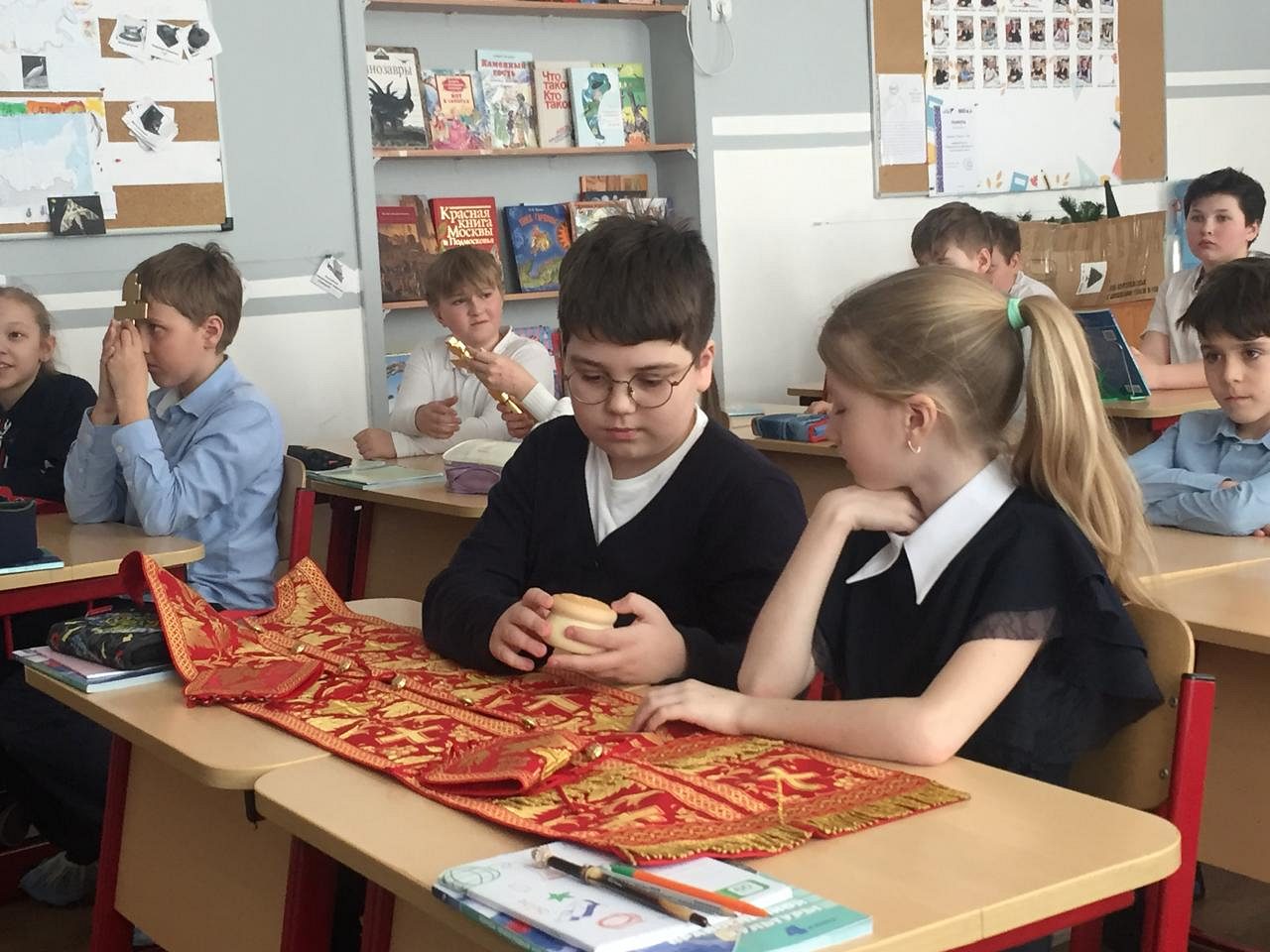 Так же во время урока священник Димитрий показал ребятам богослужебную утварь, используемую на пасхальной службе и рассказал о ее значении.