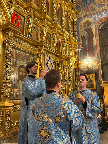 За богослужением пел мужской хор храма преподобной Евфросинии Московской (регент Даниил Кузин).