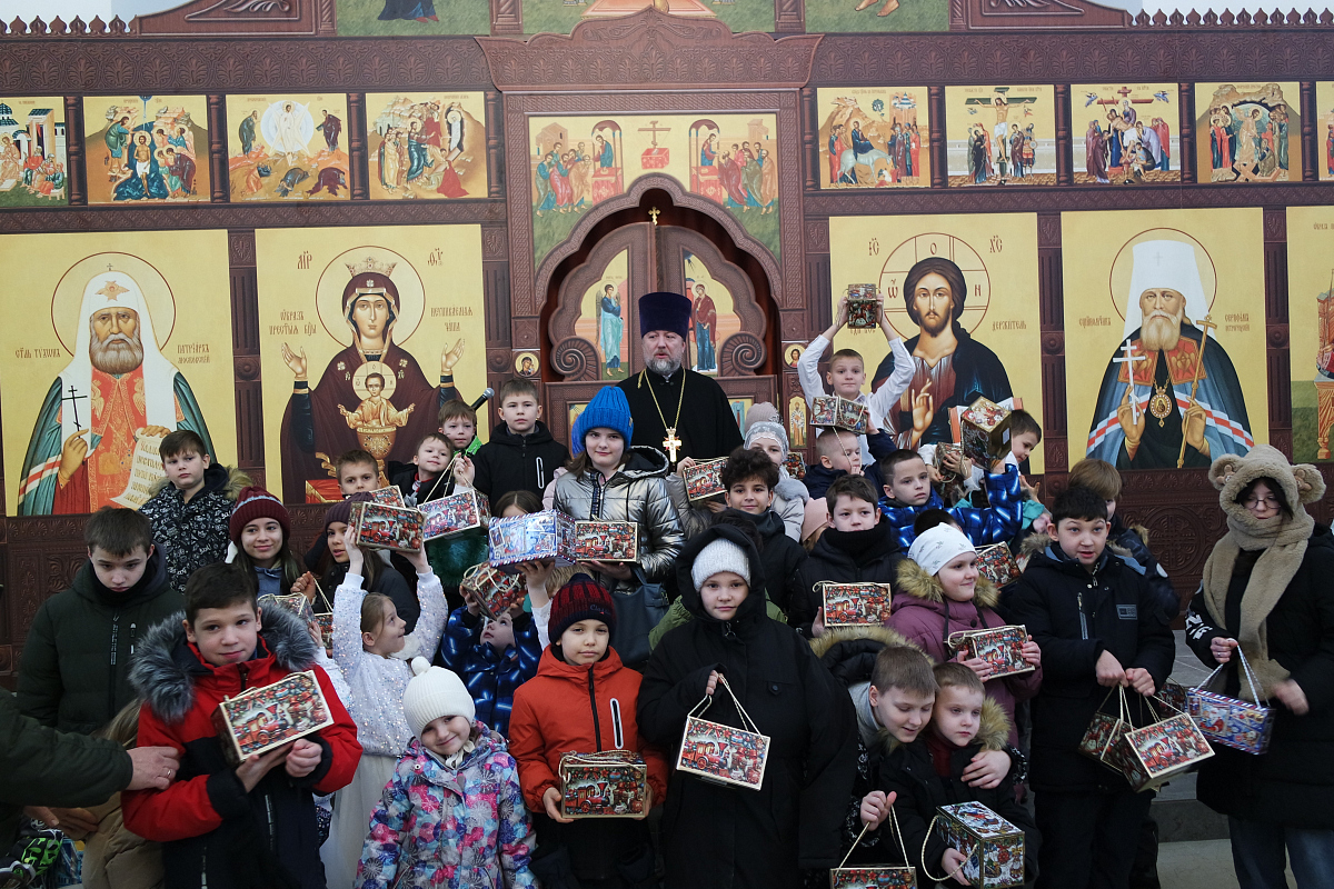 После спектакля настоятель храма священник Максим Глухих поблагодарил детей за выступление и вручил каждому ребёнку, присутствующему в храме, Рождественский подарок.