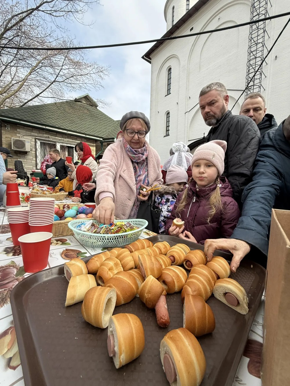 Продолжился праздник чаепитием с ароматным чаем, бутербродами и куличами.