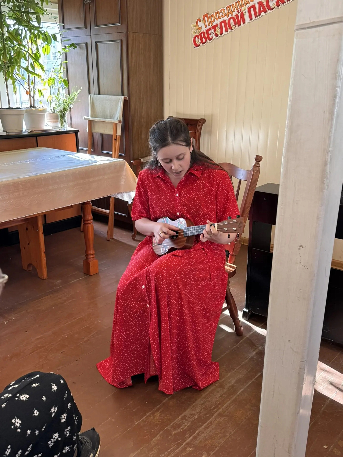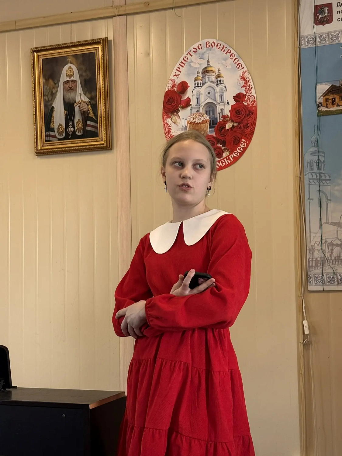 Перед фестивалем в трапезной храма состоялся детский пасхальный концерт. Дети спели пасхальные песнопения, прочли стихи и исполнили произведения под гитару и укулеле.