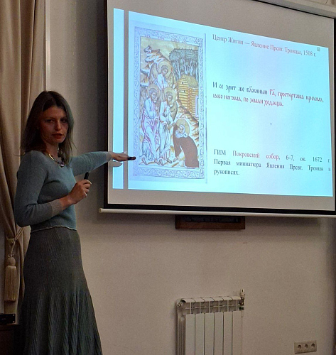 В заключительной части Александра Евгеньевна рассказала об иконографии преподобного Александра Свирского