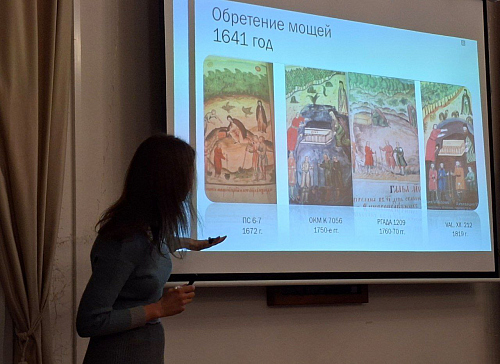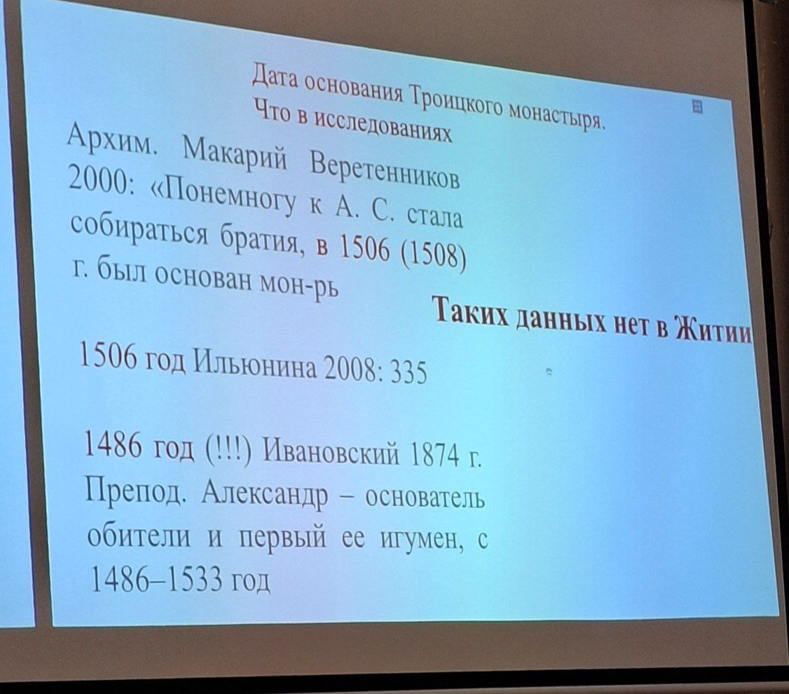 Александра Евгеньевна рассказала о том, как проходили исследования рукописей, рассказывающих о житии преподобного Александра Свирского и создании Троицкого монастыря.