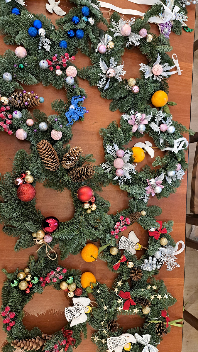 Изготовленные венки будут представлены на рождественской ярмарке, а вырученные средства направят на благотворительность.