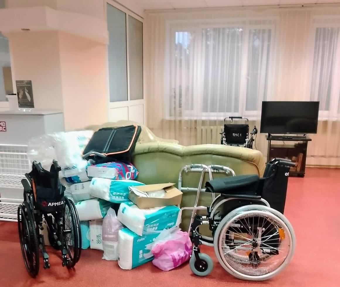 В состав гуманитарной помощи вошли одежда, лекарства, памперсы, кружки, постельное белье, пледы, инвалидные коляски.