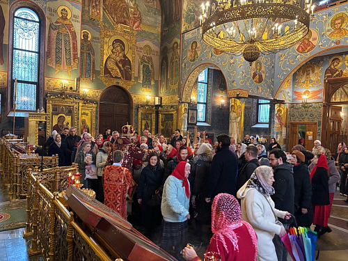 Богослужебные песнопения продолжающихся Пасхальных торжеств исполнил мужской хор храма преподобной Евфросинии (регент Даниил Кузин). Тропарь Пасхи («Христос воскресе из мертвых…») прозвучал на церковнославянском, греческом, латинском языках.