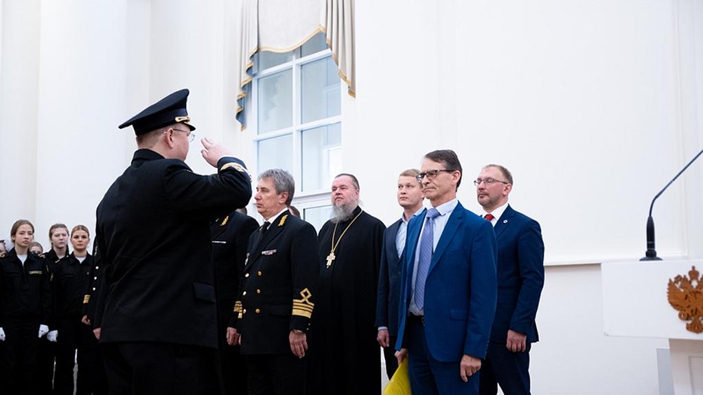 Курсант 1 курса Академии водного транспорта, специальности «Судовождение», старшина группы Мария Коноплева зачитала текст клятвы, все курсанты, волнуясь, дружно вторили: «Клянусь, клянусь, клянусь».