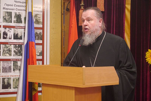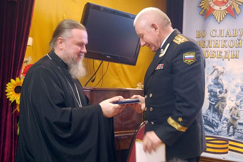 На мероприятии по приглашению руководства Совета ветеранов Черноморского флота побывал настоятель храма святого праведного воина Феодора Ушакова игумен Дамиан Залетов).