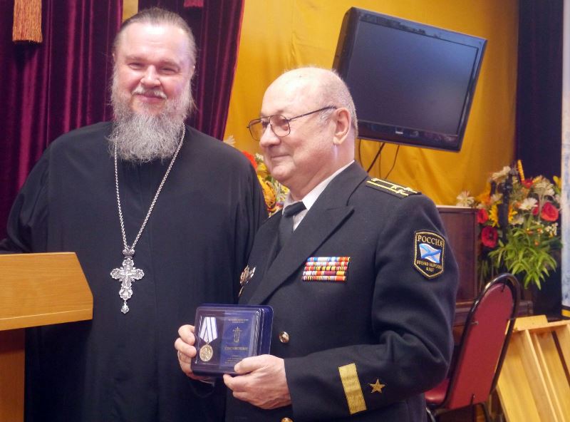 Но собрании были награждены особо отличившиеся члены Совета ветеранов и единомышленники. Настоятель вручил несколько муниципальных медалей района Южное Бутово в честь святого праведного воина Феодора Ушакова в память 20-летия его канонизации.