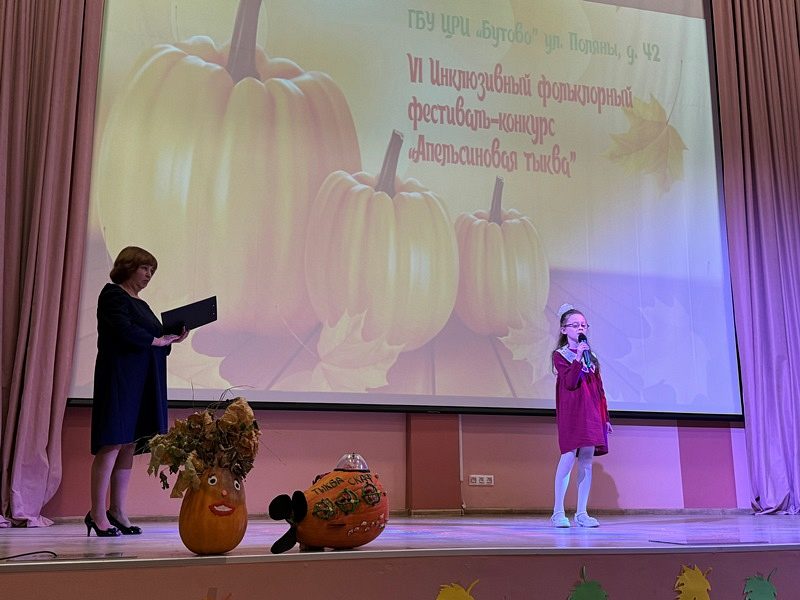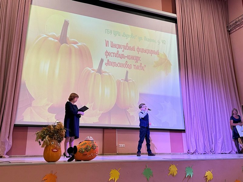 27 ноября 2024 года в Центре реабилитации инвалидов "Бутово" прошел VI Открытый инклюзивный фольклорный фестиваль-конкурс "Апельсиновая тыква". По его итогам состоялся праздничный гало-концерт, на котором выступили победители конкурсов и им были вручены награды.