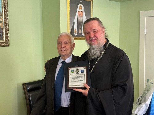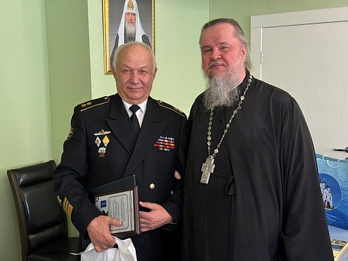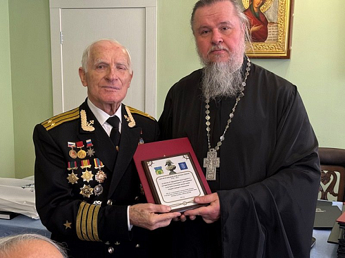Капитан 1-го ранга Шалахин Валерий Александрович, куратор ветеранской работы по военно-морскому направлению Совета ветеранов военной контрразведки ФСБ России, поздравил с праздником и подарил в Морской музей Патриаршего подворья проект памятной доски в честь военно-морских сотрудников "Смерш", которую планируют скоро установить на штабе "Смерша" ВМФ в Москве.