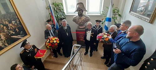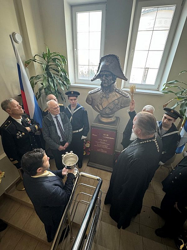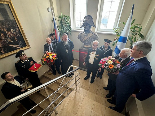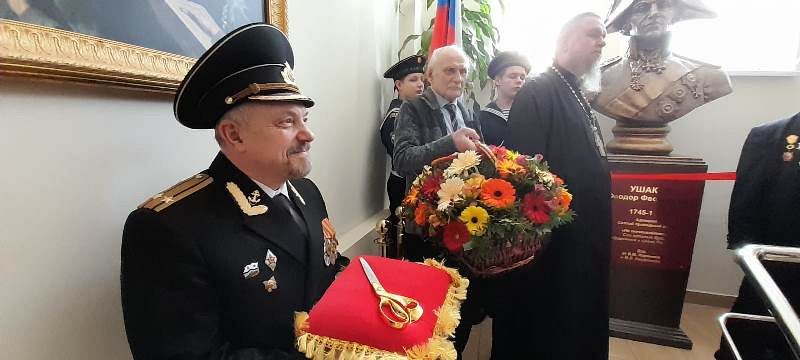 У бюста Святому адмиралу выстроились со знаменем Российчкой Федерации и Андреевским флагом кадеты школы № 1161, также кадеты держали символическую красную атласную ленту. Три адмирала торжественно развезали ленту и открыли памятник небобедимому адмиралу Флота Российского. Генералы Владимир Петрович Кудрявцев и Ефим Гордеевич Чикулаев возложили к бюсту корзины цветов. Игумен Дамиан окропил бюст Святой водой.