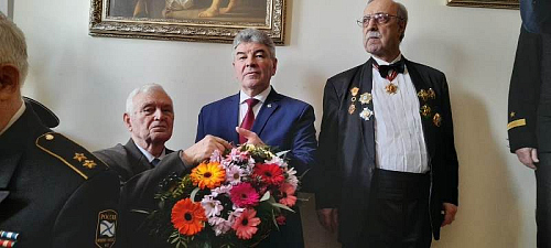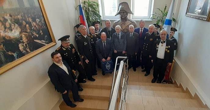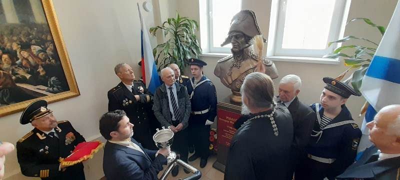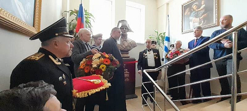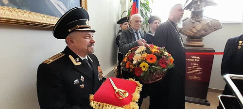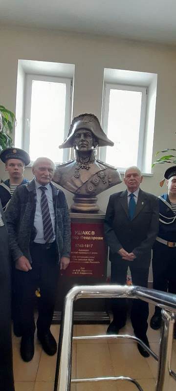 начальник Объединённого Совета ветеранов ВМФ Московского Комитета ветеранов войны капитан 1 ранга Валерий Иванович Васильев поздравил всех с Днем Защитника Отечетва и юбилеем адмирала Ф.Ф. Ушакова,
