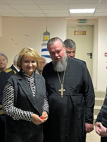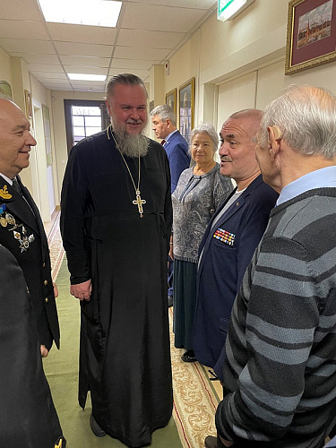 Настоятель приветствовал всех собравшихся и тепло поблагодарил всех за участие в престольном празднике храма Святого адмирала. Отдельно он отметил присутствующего "в строю" генерала Кудрявцев Владимир Петрович.