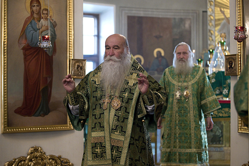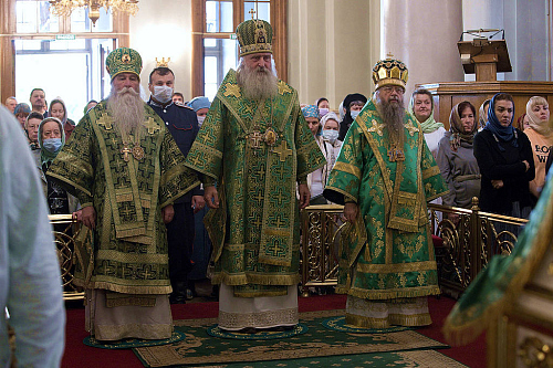 Его Высокопреосвященству сослужили: епископ Солнечногорский Алексий, наместник Данилова монастыря; епископ Мытищинский Феофилакт, наместник Андреевского ставропигиального мужского монастыря г. Москвы; архимандрит Лука (Пинаев), благочинный Данилова монастыря; протопресвитер Владимир Диваков, секретарь Патриарха Московского и всея Руси по г. Москве; игумен Феофан (Лукьянов), заведующий Сектором протокола ОВЦС МП; протоиерей Игорь Якимчук, секретарь ОВЦС по межправославным отношениям; насельники Данилова монастыря в священном сане.