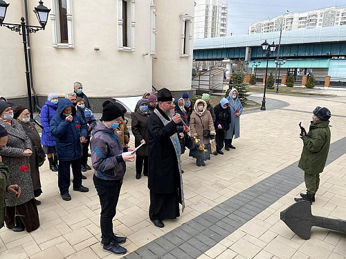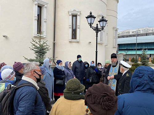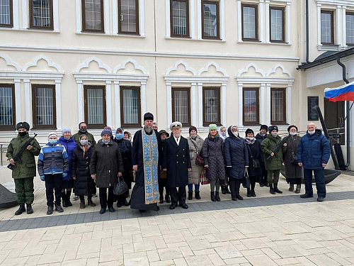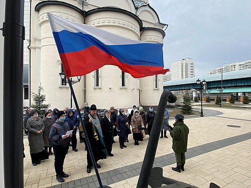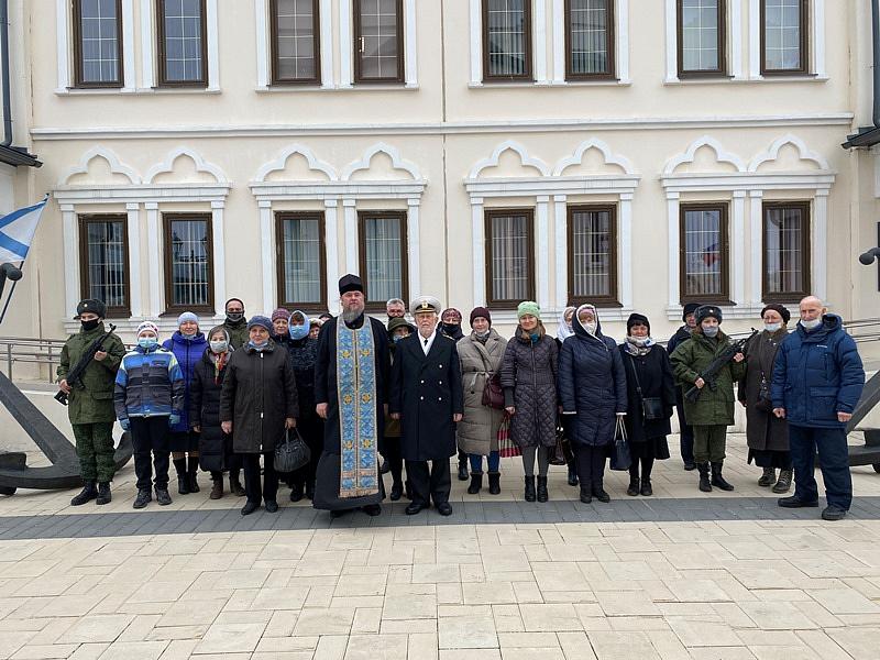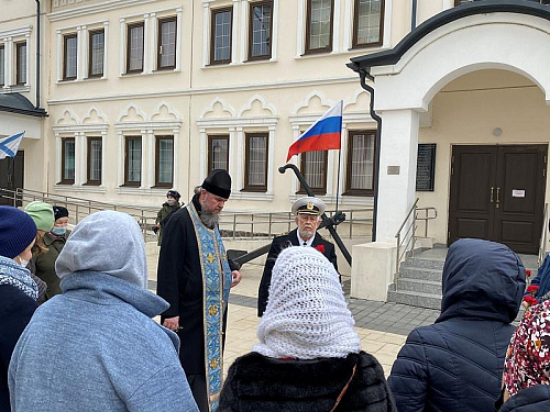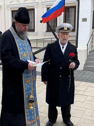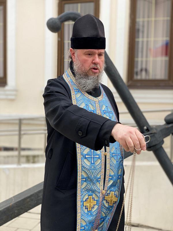 После праздничного богослужения настоятель храма игумен Дамиан (Залетов), прихожане и гости, собрались около памятников Российскому флоту у алтаря храма - исторических якорей российских кораблей, адмиралтейских якорей.