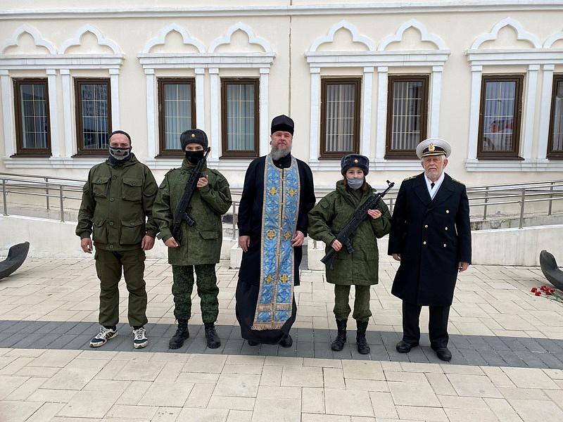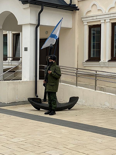 Почетный караул у памятных якорей заняли воспитанники патриотических клубов/объединений, отряда ГПК "Каскад" ВВПОД Юнармия Москва при ГБУ Центр Досуга и Культуры "Южное Бутово".
