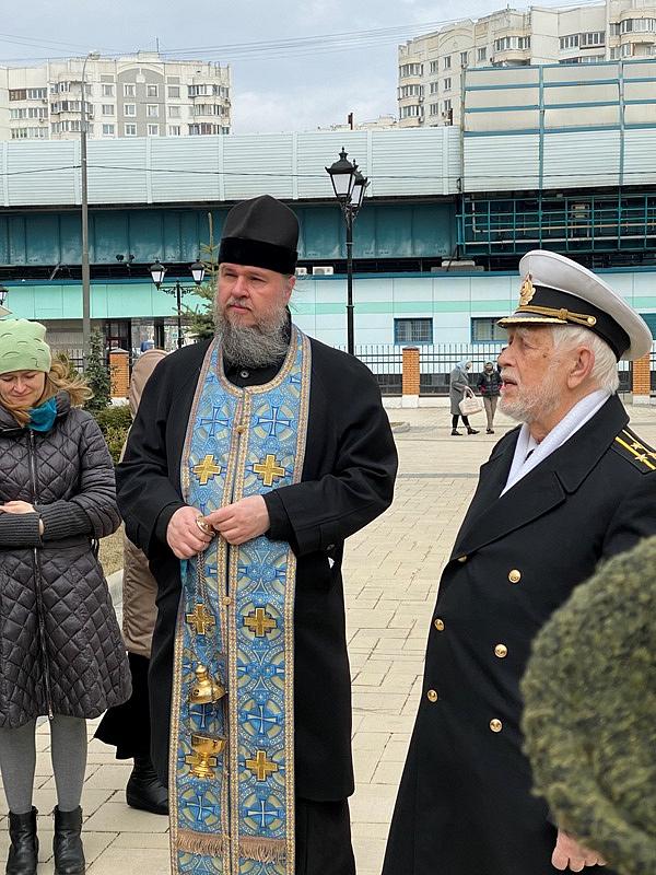 Перед собравшимися выступил игумен Дамиан, который рассказал о подвиге служения на подводном флоте. Далее выступил почетный житель района Южное Бутово, помощник настоятеля храма святого праведного воина Феодора Ушакова по патриотической работе, руководитель местного отделения Российского военно-исторического общества, Штаф Рудольф Леонидович, который рассказал о трагической судьбе боевой атомной подводной лодки К-278 «Комсомолец».