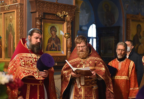 По окончании Литургии протоиерей Николай Карасев и духовенство благочиния совершили славление священномученику Александру Орлову.
