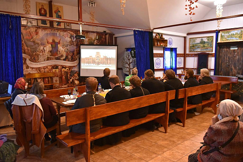 По окончании Богослужения духовенство и прихожане разделили братскую трапезу. Иерей Алексей Петухов выступил с презентацией фильма о жизни и подвиге Священномученика Александра Орлова и открыл выставку, посвященную Новомученикам и Исповедникам Юго-Западного викариатства. Выставка в храме Живоначальной Троицы в Старых Черемушках продлится до конца октября.