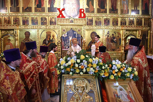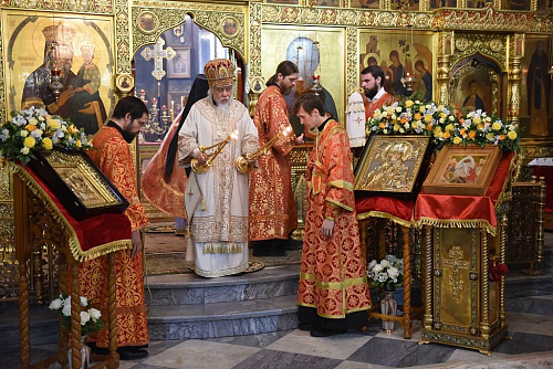 По окончании Литургии было совершено славление. Епископ Пантелеимон прочитал молитву святителю Николаю, архиепископу Мир Ликийских. Затем Владыка и духовенство поклонились иконе святителя Николая.