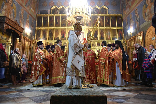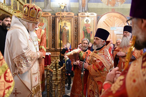 На сугубой ектении были вознесены особые прошения. Владыка Пантелеимон прочитал молитву о Святой Руси.
