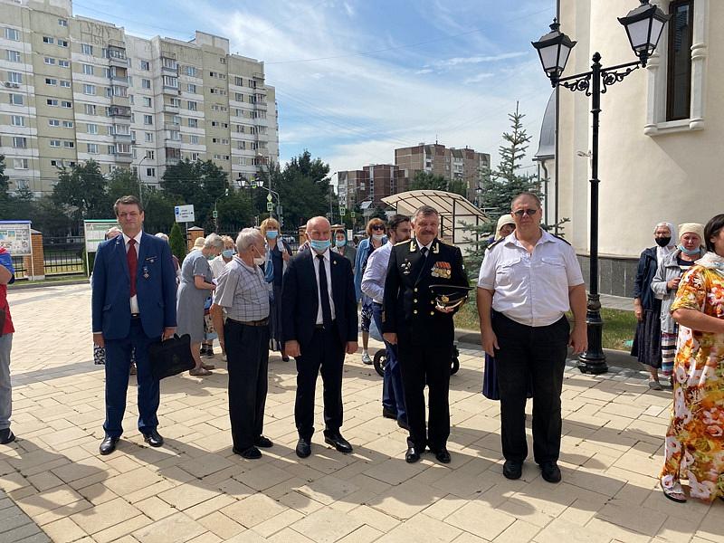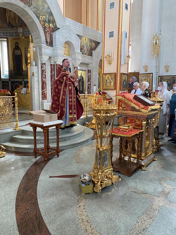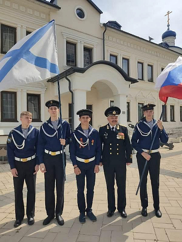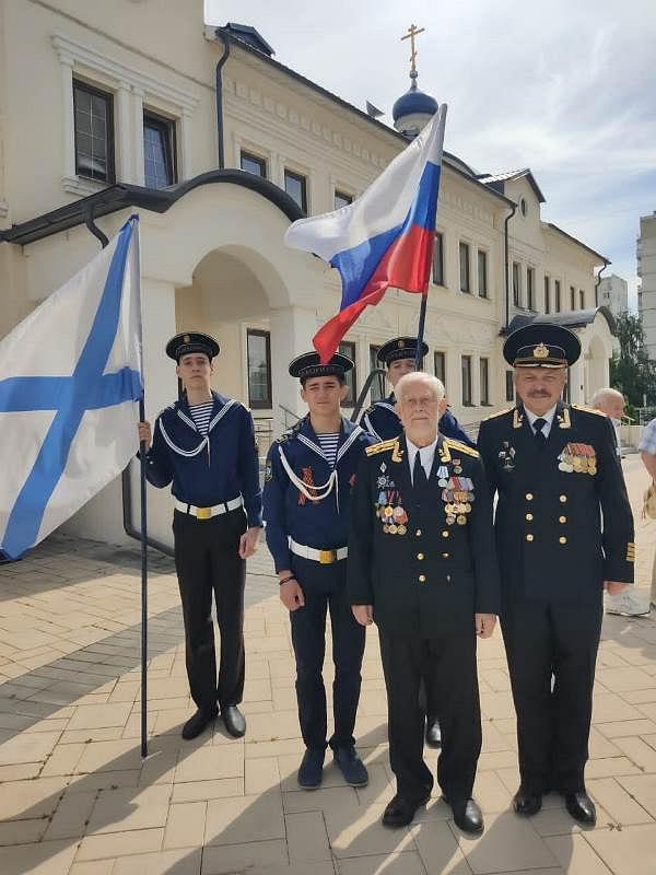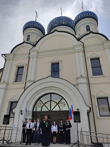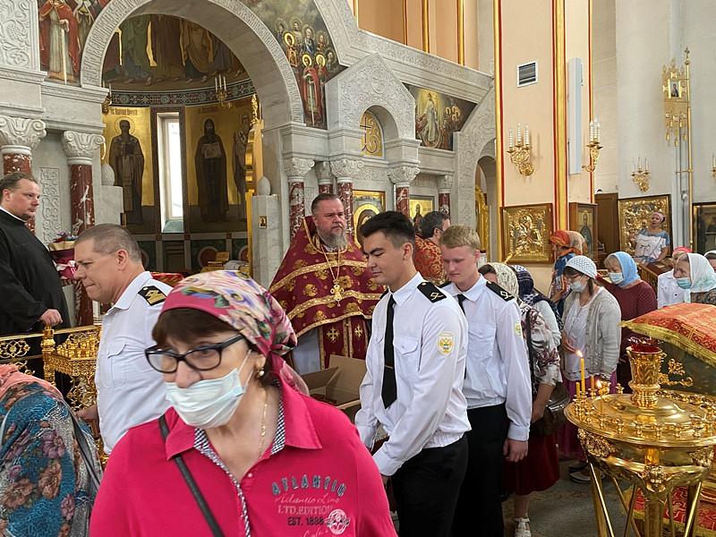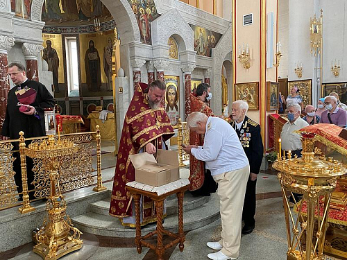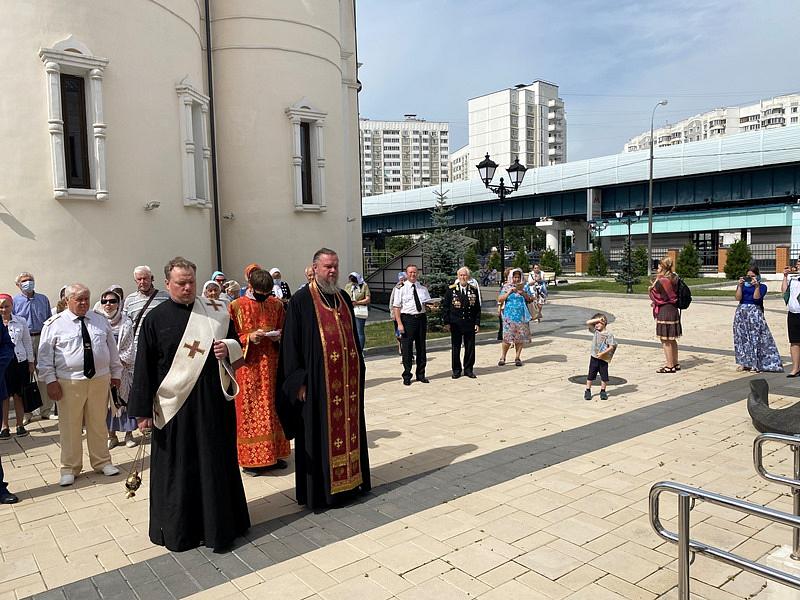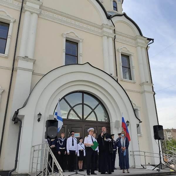 По завершению Литургии настоятель храма, игумен Дамиан (Залетов), совершил заупокойную молитву по морякам и воинам у старинных якорей русских кораблей, которые пребывают за алтарем храма. После молитвы под колокольный звон прихожане возложили цветы у морского мемориала. У якорей в почетном карауле выстроились ребята, кадеты и курсанты, с флагом России и Андреевским флатом.