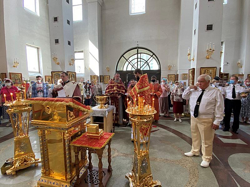 Песнопения богослужения исполнил смешанный хор под управлением Форостяной Светланы. Молитвы ко Причастию прочитал контр-адмирал Козлов Д.Ю.