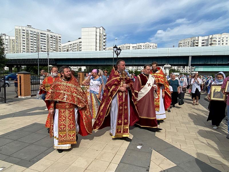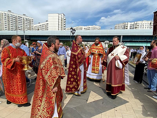 В конце богослужения было возглашено многолетие Святейшему Патриарху Московскому и всея Руси Кириллу, по благословению которого было начато и продолжается святого дело устроения этого храма Божия и всей огромной Программы строительства новых храмов в Столице. Всем потрудившимся в устроении приходской жизни на этом новом месте, жертвователям и благоукрасителям храма Божия многая лета!