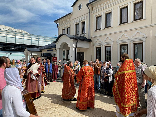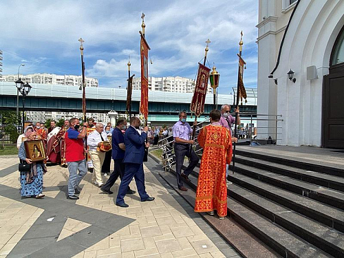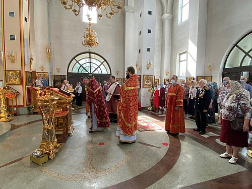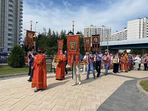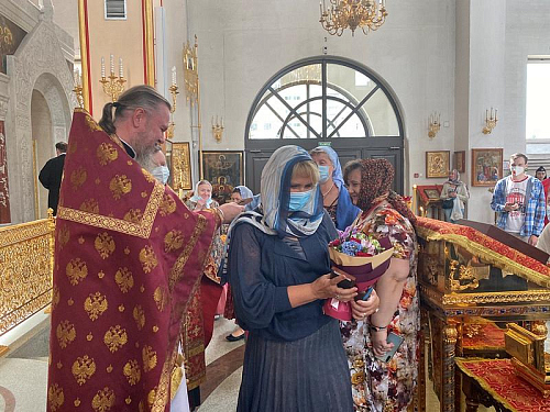 Была отслужена Божественная Литургия, водосвятный молебен и совершен Крестный ход вокруг храма.