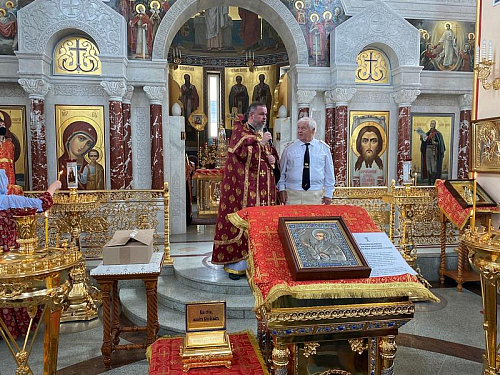 Настоятель обратился со словом, в котором рассказал о причинах прославления Святого адмирала, остановился на особых чертах его личности и жизненного пути, отметил его святое участие в жизни Подворья и строительстве нового храма. Настоятель рассказал о том, что в созидании храма чувствуется духовное водительство святого воина Феодора. Игумен Дамиан при этом подчеркнул важность созидания церковной общины, активной религиозной и духовной жизни прихожан.