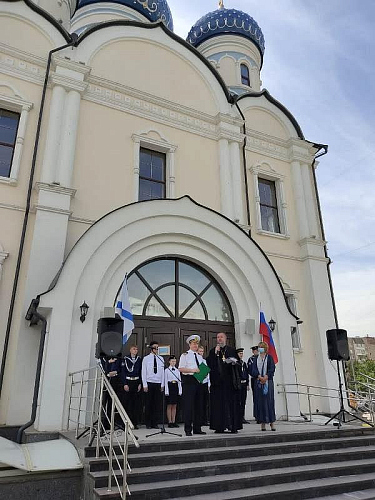 После приветствий и добрых слов все возложили к памятнику непобедимому адмиралу Флота Российского цветы и пропели церковные песнопения.
