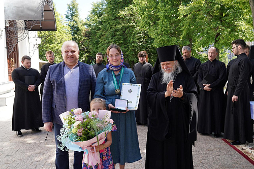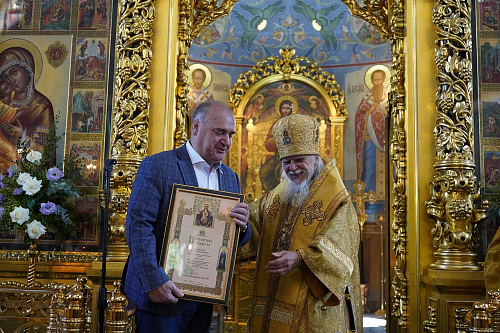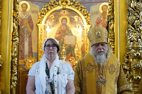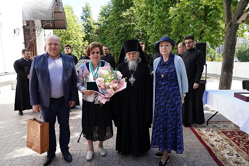 Епископ Пантелеимон поздравил собравшихся с Неделей Всех святых, в земле Российской просиявших, и вручил церковные награды.