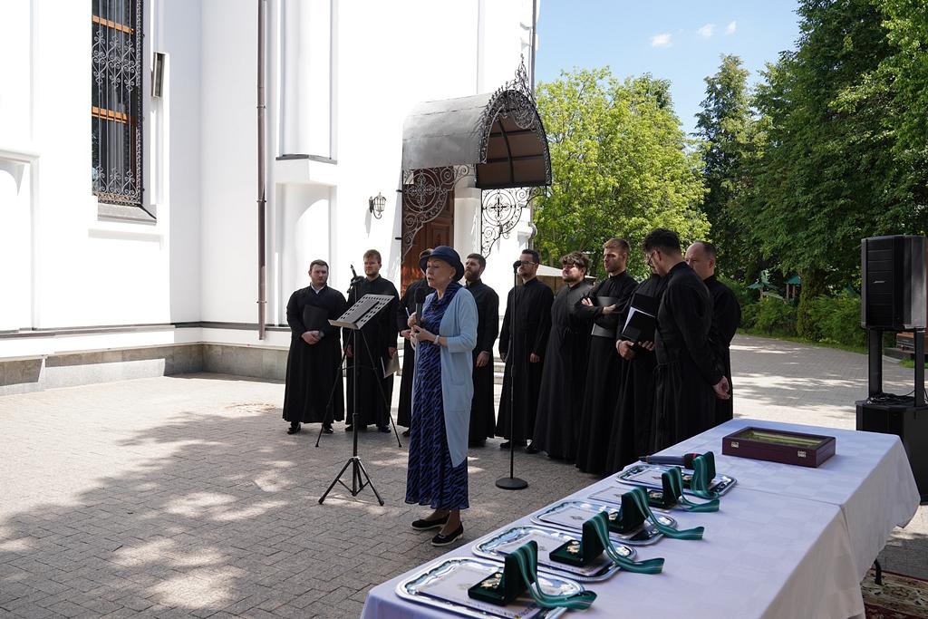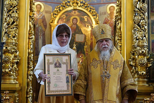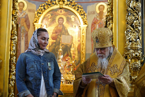 Затем наступил особенно волнующий момент праздника – награждение женщин, являющих окружающим добрый пример христианской жизни. Орденом святой благоверной великой княгини Евдокии Московской и грамотой Фонда имени великого князя Дмитрия Донского и великой княгини Евдокии Московской были награждены: