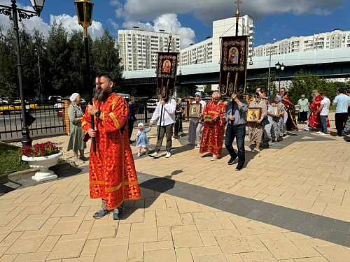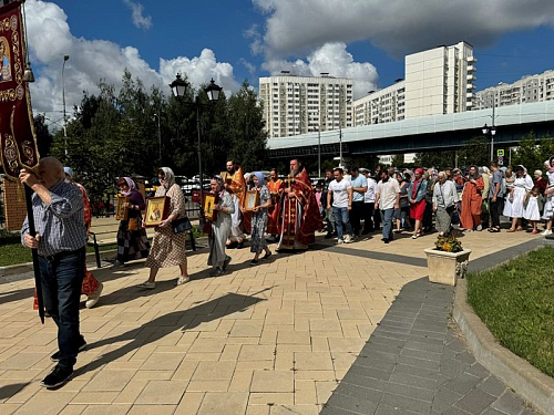 В конце богослужения было возглашено многолетие Святейшему Патриарху Московскому и всея Руси Кириллу, по благословению которого было начато и продолжается святого дело устроения этого храма Божия и всей огромной Программы строительства новых храмов в Столице. Всем потрудившимся в устроении приходской жизни на этом новом месте, жертвователям и благоукрасителям храма Божия многая лета!