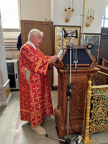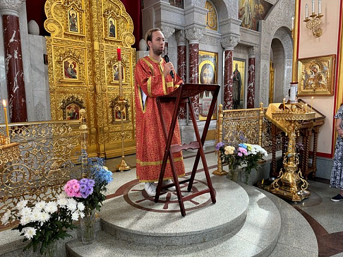 После запричастного стиха проповедь на тему апостольского чтения произнес директор Воскресной школы Патриаршего подворья чтец Георгий Андреевич Овчинников.