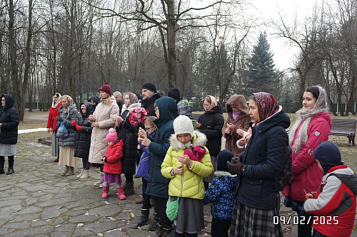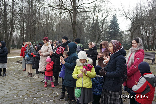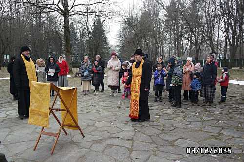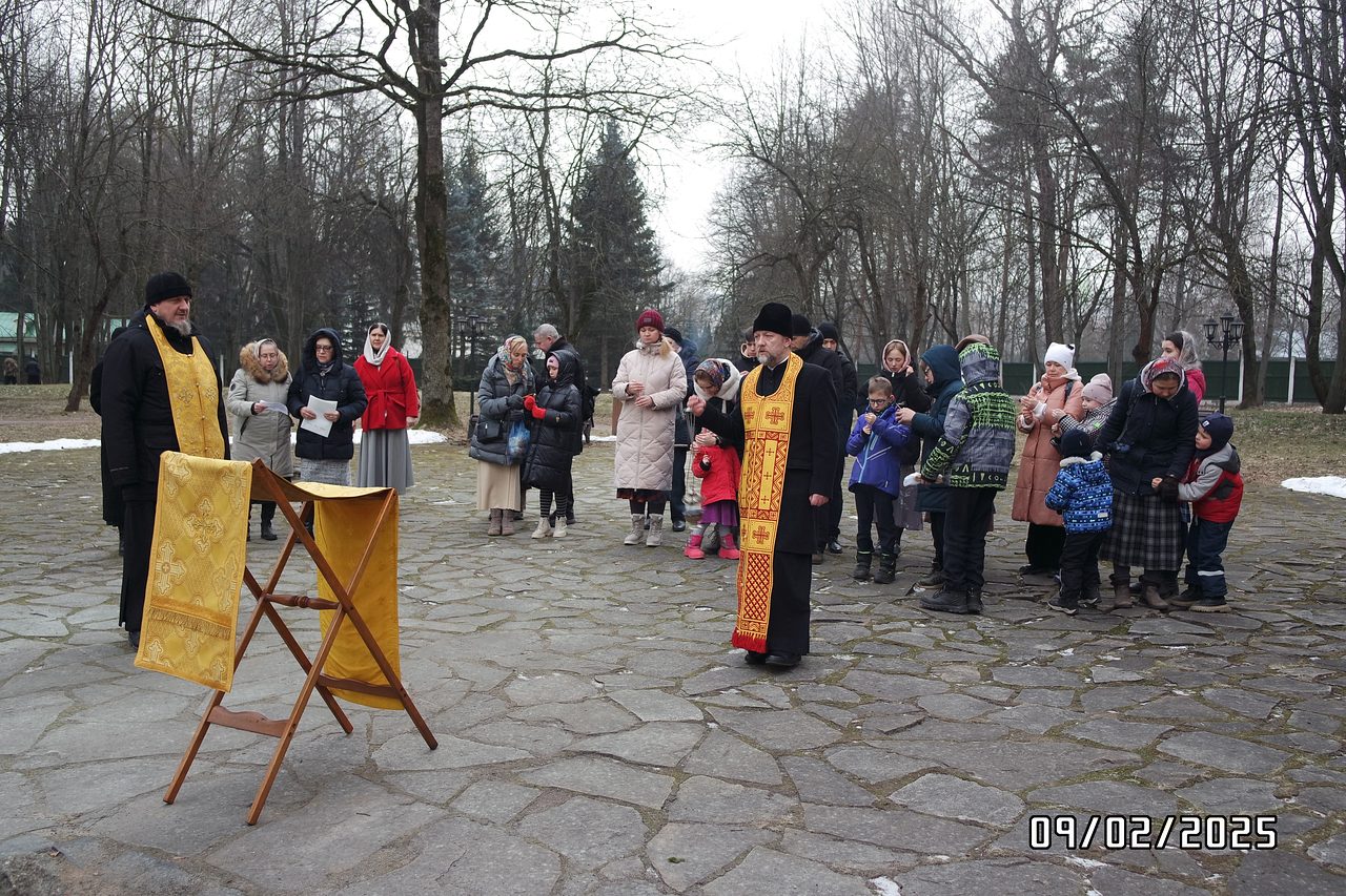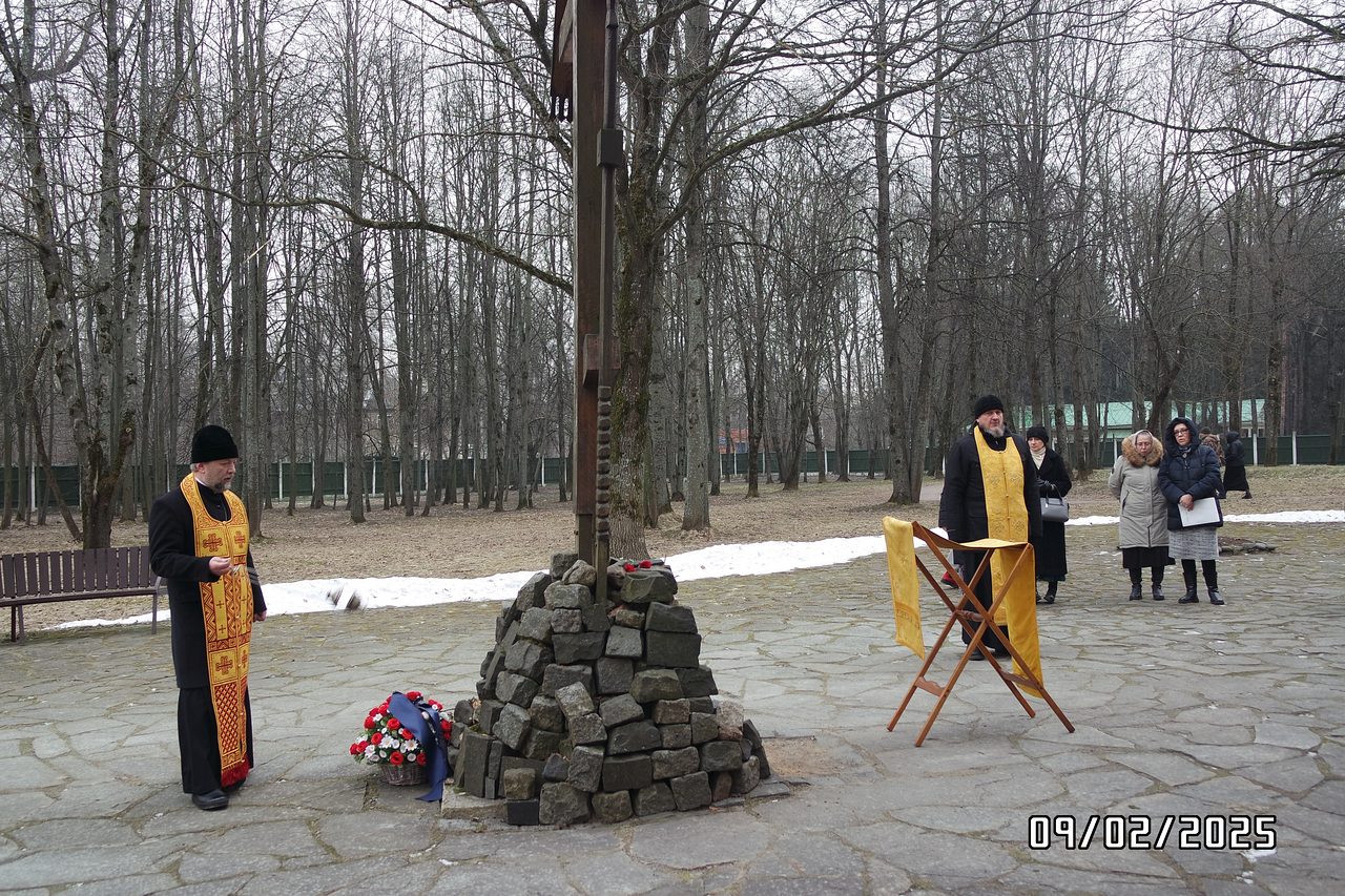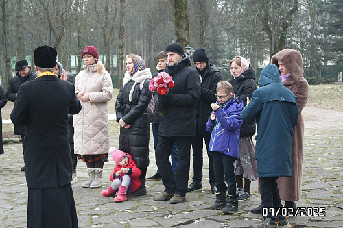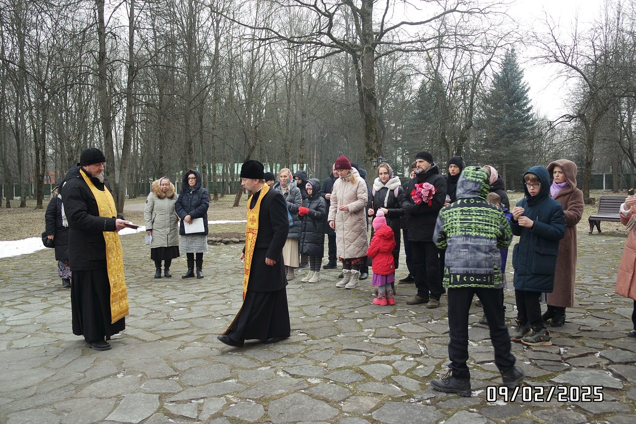 9 февраля 2025 г., в праздник Собора Новомучеников и Исповедников Церкви Русской, поминовение всех усопших, пострадавших в годину гонений за веру Христову, после праздничной Божественной Литургии настоятель храма Священномученика Серафима, митрополита Петроградского в Южном Бутове г.Москвы иерей Максим Глухих и клирик храма иерей Сергий Онг, отслужили панихиду на Бутовском Полигоне по всем невинно-убиенным в годы лихолетья.