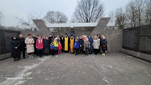 После панихиды паломники прошли с молитвой по Аллее памяти, на мраморных стенах которой, начертаны имена всех невинно убиенных, возложили живые цветы. Каждый молящийся ударил в поминальный колокол.