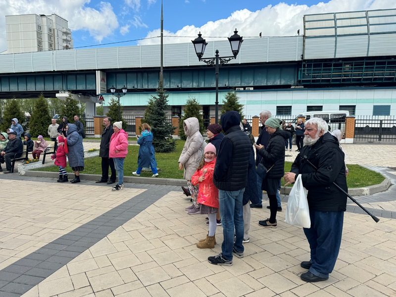 После праздничного богослужения прихожане и все желающие были приглашены на Пасхальный праздник, который состоялся на улице около храма святого праведного воина Феодора Ушакова в Южном Бутове.