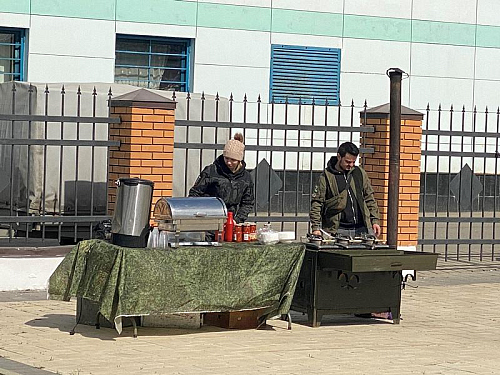 После концерта все участники, прихожане и гости поели "морской" каши в походной кухне.