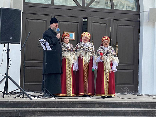 После праздничного богослужения прихожане и все желающие были приглашены на Пасхальный праздник, который состоялся на улице около храма святого праведного воина Феодора Ушакова в Южном Бутове.