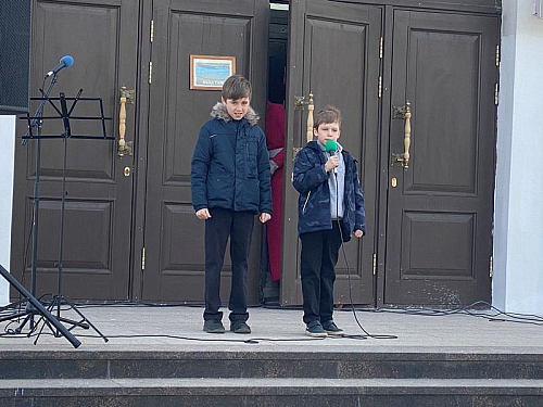 - Зверев Мирон и Зверев Фёдор воспитанники Воскресной школы "Стихи о Пасхе".