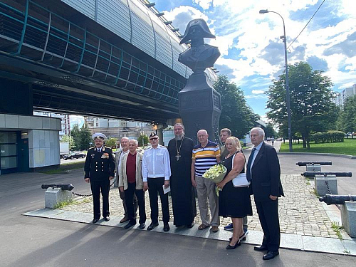 Перед памятником адмиралу Феодору Ушакову прихожане Подворья исполнили духовные песнопения в честь Святого воина и совершили заупокойную молитву обо всех моряках.