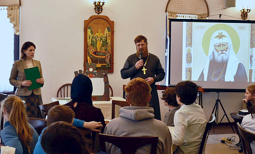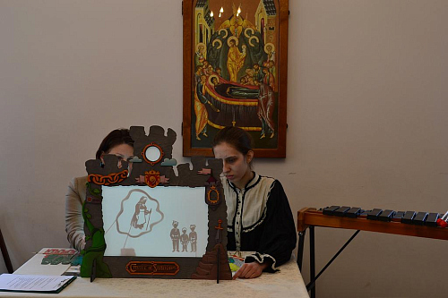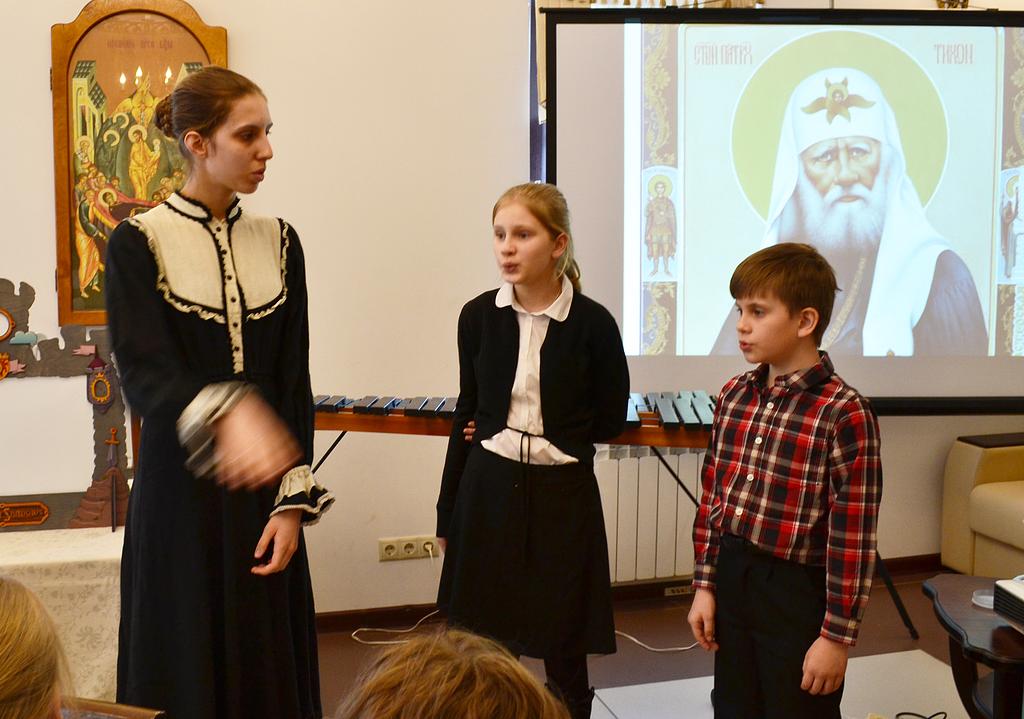 Воспитанники Воскресной школы с помощью теневого театра показали сцены из жития Святейшего Тихона, Патриарха Московского.