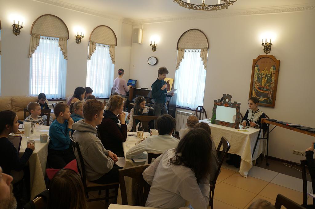 Учащиеся старшей и подростковой групп прочитали стихотворение из духовной лирики А.С. Пушкина "Отцы пустынники", в котором "перепевается" молитва Ефрема Сирина, пустынника четвёртого века, призывавшего к покаянию. Эта молитва издавна читается в дни Великого поста и называется покаянной.