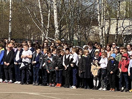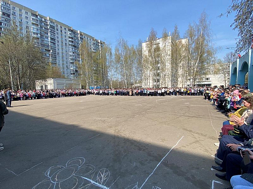 На торжественном построении на площади перед школой присутствовали сотни школьников, преподавателей и родителей, вся школа приветствовала важное событие в жизни учебного заведения.