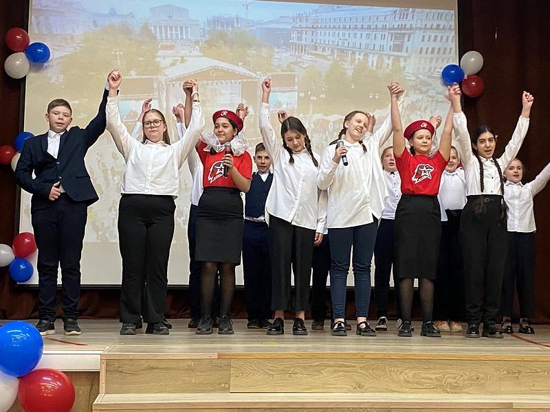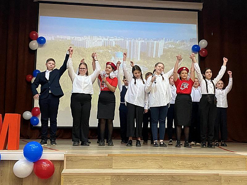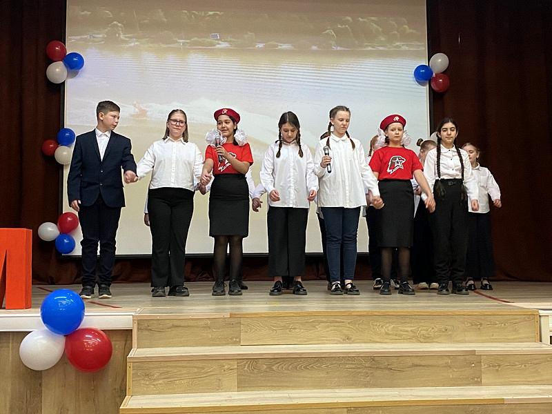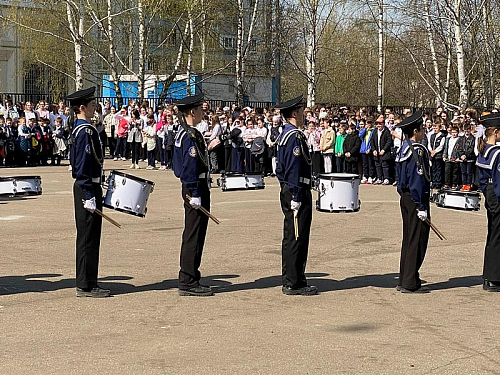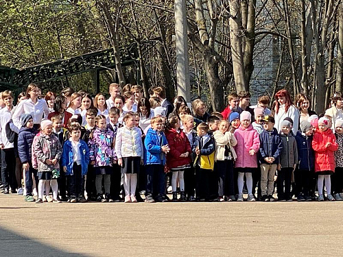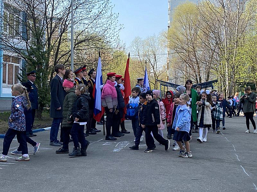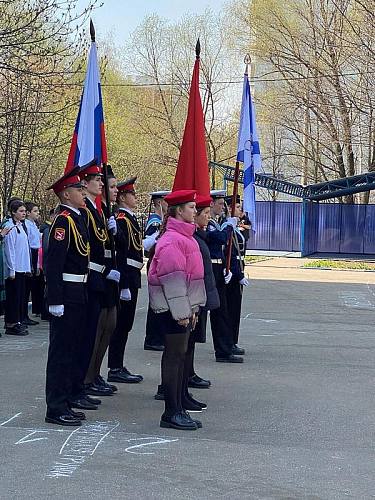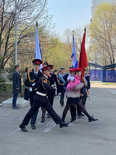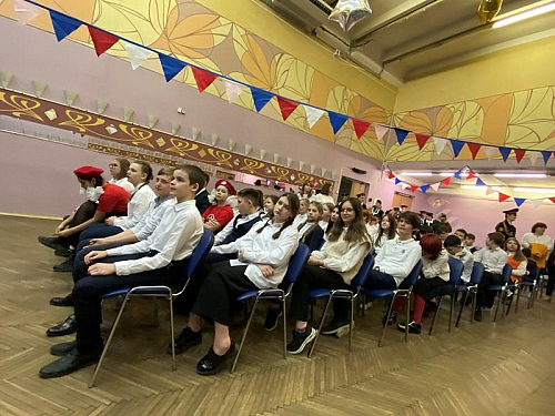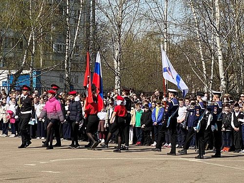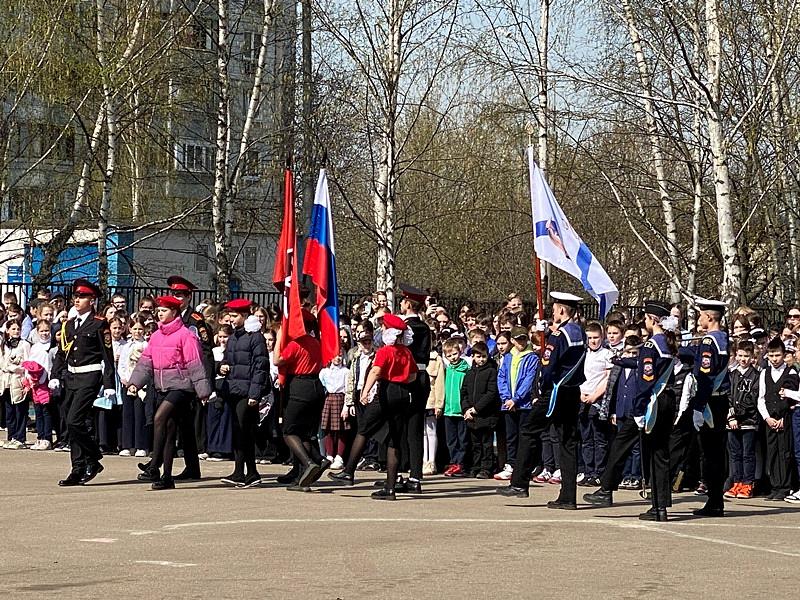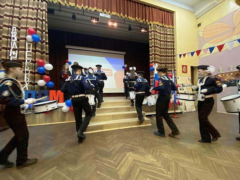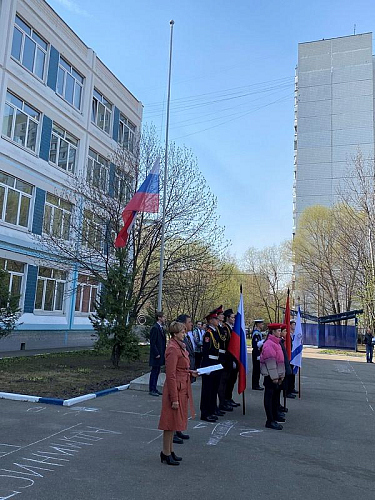 Перед началом мероприятия был поднят флаг Российской Федерации и прозвучал Гимн России, причем, его пели с воодушевлением все школьники. Далее знаменная группа внесла флаги России, Всероссийского детско-юношеского военно-патриотического общественного движения Юнармия и Андреевский флаг на площадь перед школой.