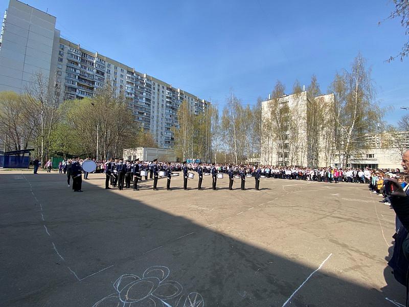 С воодушевлением все присутствующие встретили отряд барабанщиков, кадет-юнармейцев, учащихся Государственного бюджетного общеобразовательного учреждения города Москвы «Школа № 1883» под руководством полковника Зятчина Владимира Сергеевича, которые промаршировали по площади с барабанным боем, показывая мастерство и умение обращаться с музыкальными инструментами и строевой подготовки.