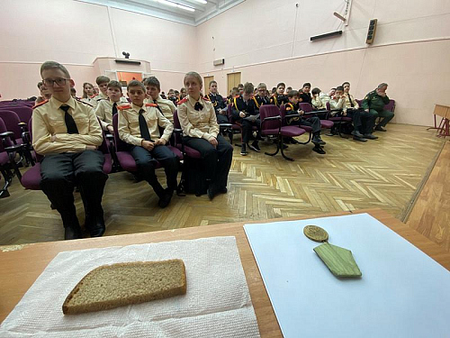 Перед ребятами выступили генерал-майор Николай Николаевич Тутрин и игумен Дамиан (Залетов). Ребятам подробно рассказали о блокаде и героизме людей. Настоятель напомнил о дневнике Тани Савичевой. Николай Николаевич рассказал о своей поездке в Донецк.