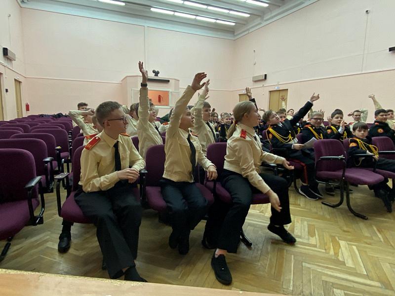 Перед ребятами выступили кадеты старшего класса школы, которые подробно рассказали о событиях блокады Северной столицы, страданиях горожан и мужеству защитников города. Их сообщение сопровождалось показом картин и карт события.